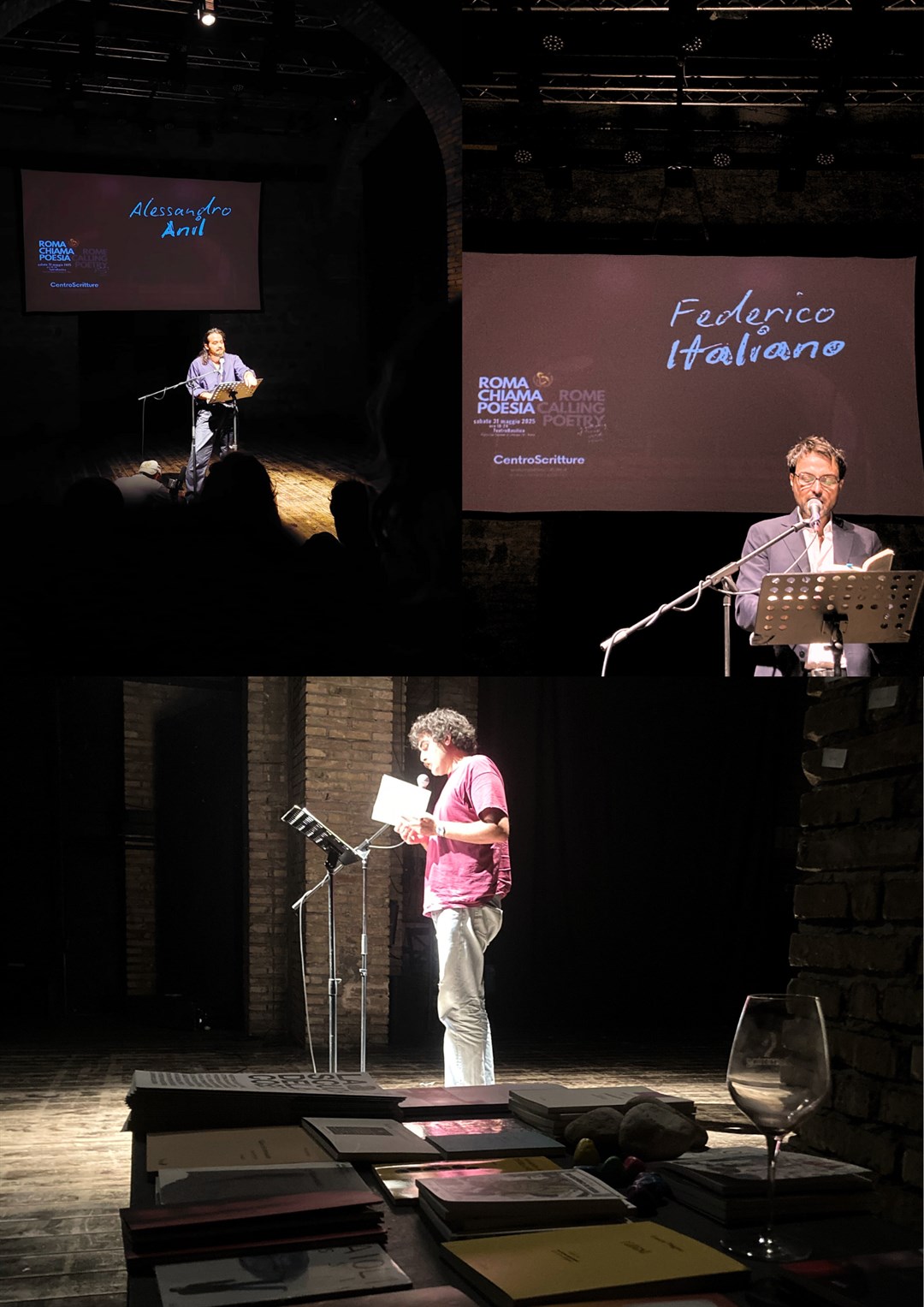 ROMA CHIAMA POESIA è un evento libero organizzato dal CentroScritture, tenuto al TeatroBasilica di Roma sabato 31 maggio 2025. I poeti partecipanti, la descrizione e le modalità di svolgimento dell’evento sono recuperabili qui1, e la videoregistrazione integrale sul sito web www.centroscritture.it e sul canale YouTube a questo link2.